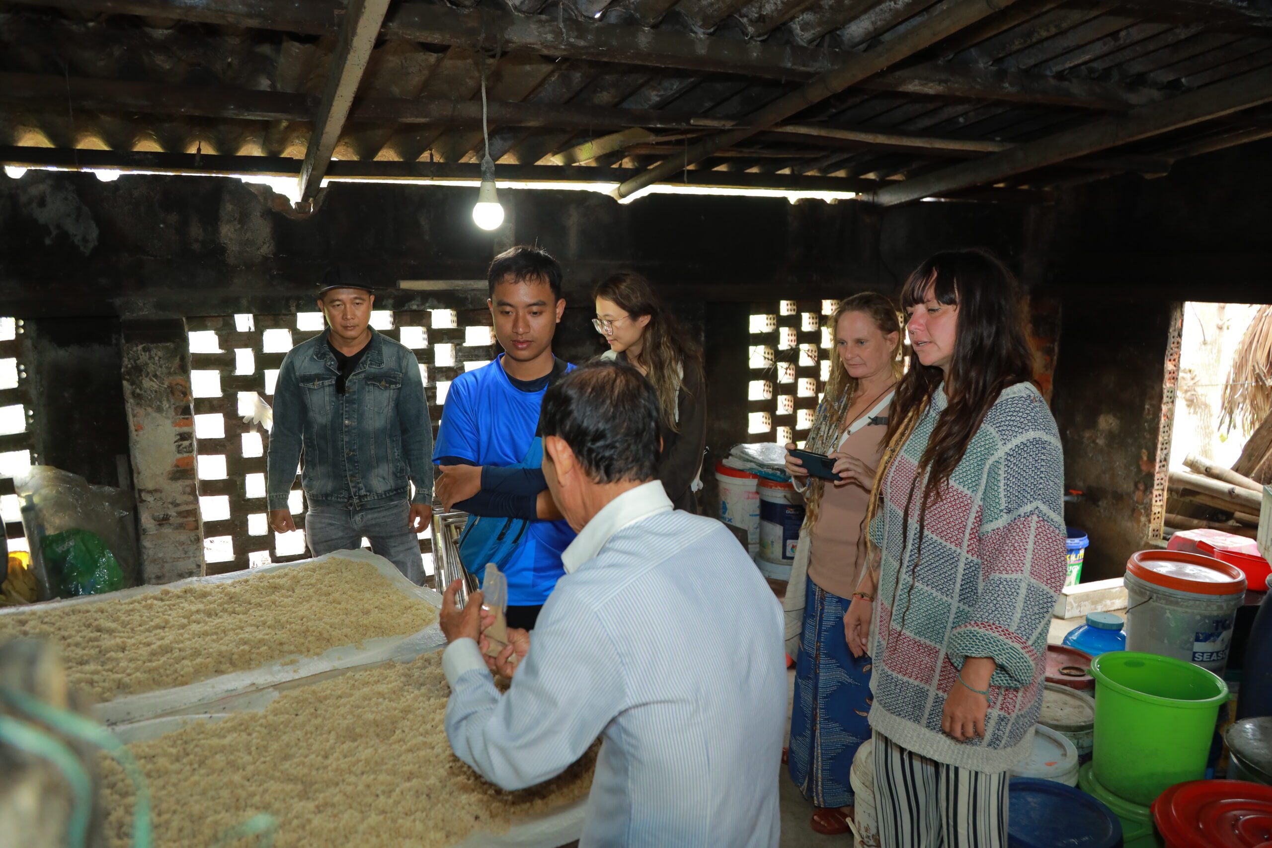 We then weave through small villages to visit another local family, where rice crackers and noodles are still made the traditional way; feel the steam, see the skill up close, and roll up your sleeves to try it yourself.